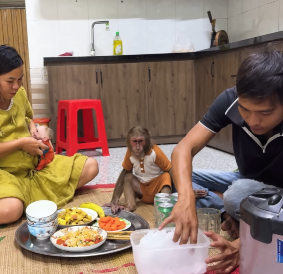 The baby monkey nodded in his own way, understanding perfectly. They weren’t doing this for attention or applause—they were doing it because they loved their family, because they understood the importance of small acts of care.