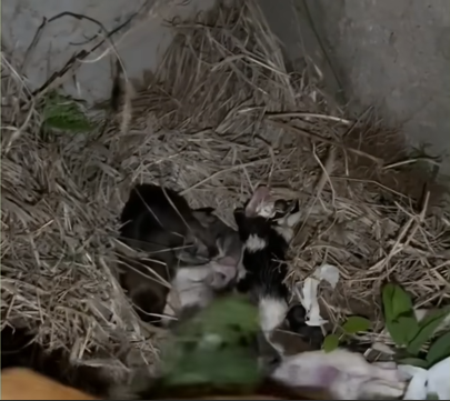 It was a rainy evening when I first saw her—a small, wet figure huddled near the edge of the park, shivering under a thin tree. At first, I thought she was just another stray, tired and hungry, trying to escape the downpour. But then I noticed something in her mouth—a tiny bundle, squirming weakly.