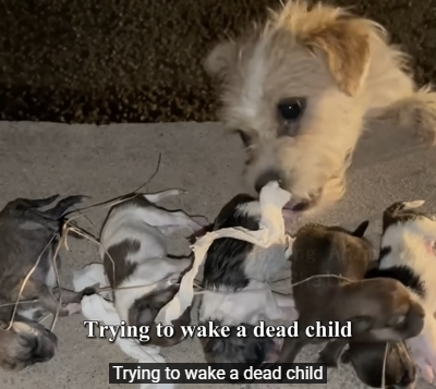 The mother dog held it gently, with a carefulness that belied her exhaustion. And then I saw them all: three more tiny puppies, each cradled in her jaws one by one, her eyes wide with fear and hope. She wasn’t just a stray; she was a mother, a guardian, and at that moment, her entire world rested in her mouth.