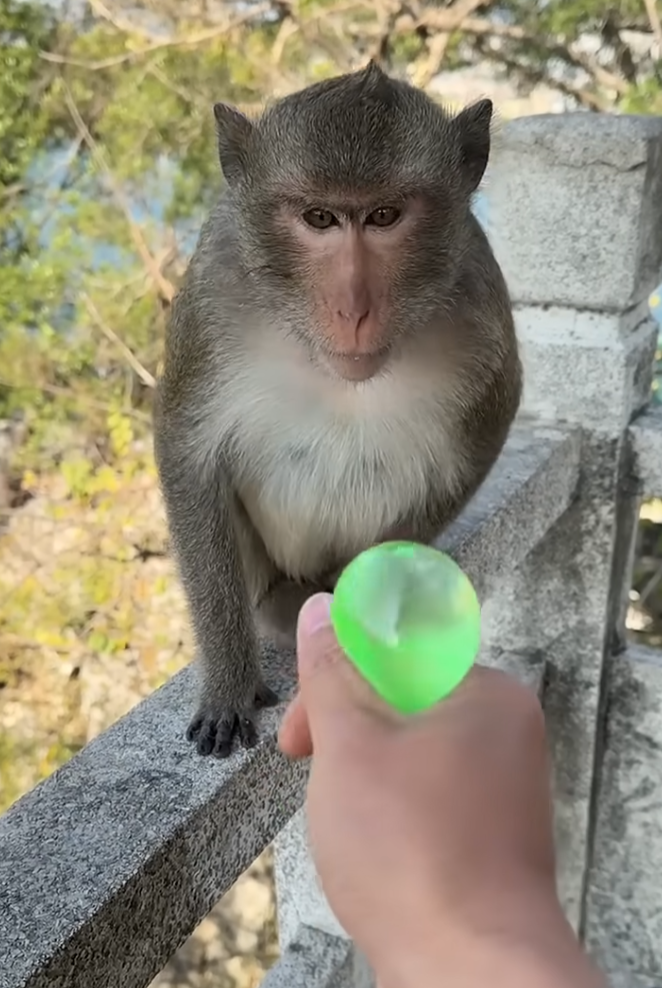 Bibi leapt up first, grabbing a banana and then tossing it gently down to her friends. But she didn’t stop there—she made it a game. Each monkey had to swing, jump, or climb in creative ways to catch their banana, with Bibi squeaking encouragement and cheering them on.