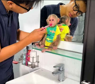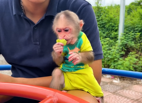 While exploring further, Lala noticed a group of young monkeys playing near a patch of flowers. She ran over to join them, but Bongo followed, staying close enough to keep her safe. Lala’s friends invited her to a playful game of tag, and she darted around the park with nimble leaps, squeaks, and joyful spins.