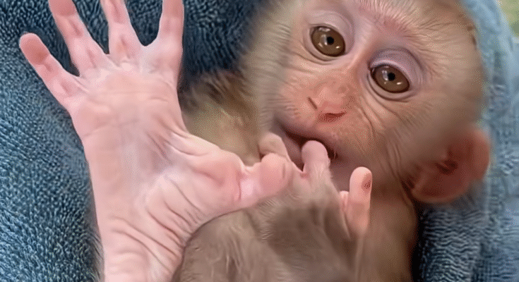 Susu loved water but was always a little startled at first. The moment her mother dipped her into the shallow wooden tub, she squealed softly, clutching onto her mother’s arm with her tiny fingers. The water was neither too cold nor too warm, just the perfect temperature. The mother monkey, experienced and gentle, knew exactly how to make her little one feel safe. With slow, circular motions, she began to bathe Susu, using her hands to wash away the dust and bits of dried leaves that had stuck to the baby’s fur during playtime.