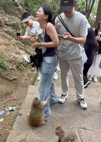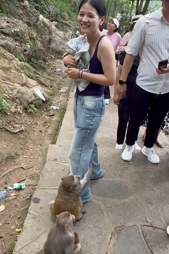 All the monkeys gathered curiously below. Mama Monkey came carrying Baby Monkey in her arms, while Uncle Tu arrived with his favorite walking stick. Even the parrots and squirrels nearby decided to see what all the fuss was about.
