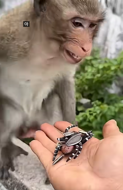 He quietly filled a big leaf with water, sneaking behind Baby Monkey. “He’s gonna jump so high!” CUTIS whispered to himself, struggling not to laugh too soon.