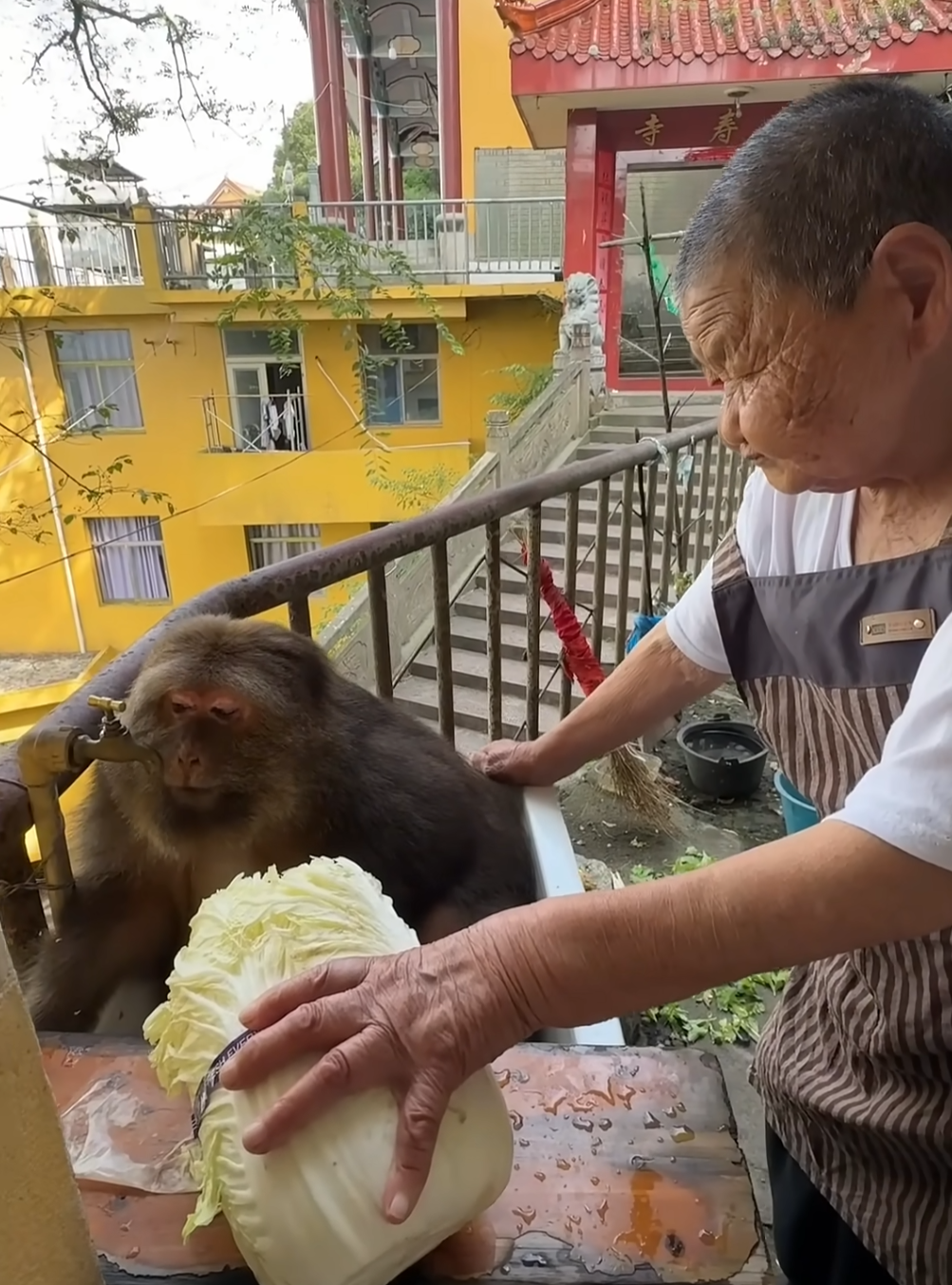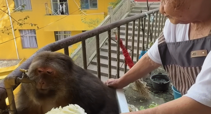 The little monkey looked up, smiled, and softly patted Lun’s cheek as if to say, “Goodnight, my friend.”