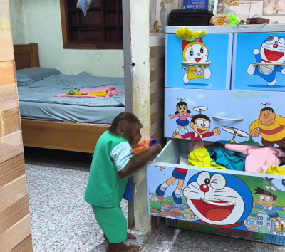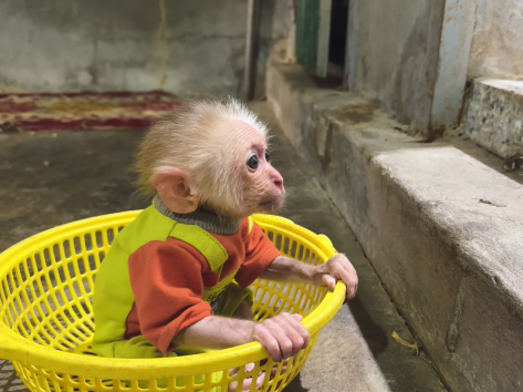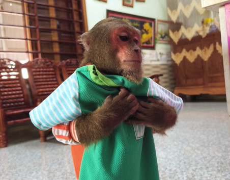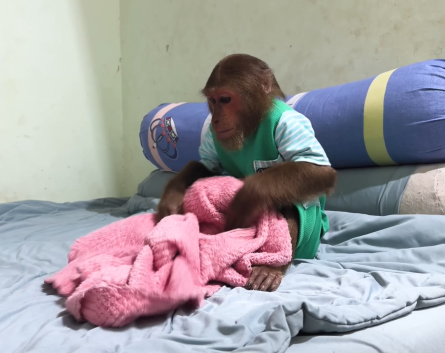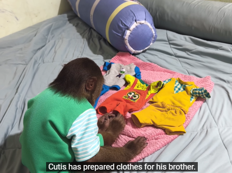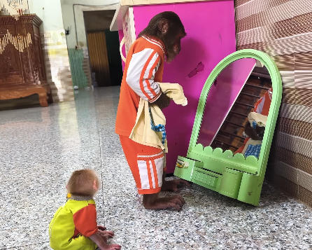 The baby monkeys copied them, dragging towels behind like little superhero sidekicks. CUTIS gave up trying to keep things serious—his heart was too full of joy watching them play.