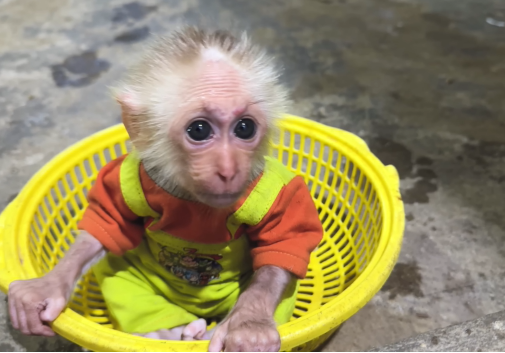 The baby monkeys blinked at CUTIS, their fur dripping and sticking out in funny directions.