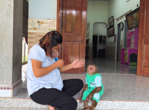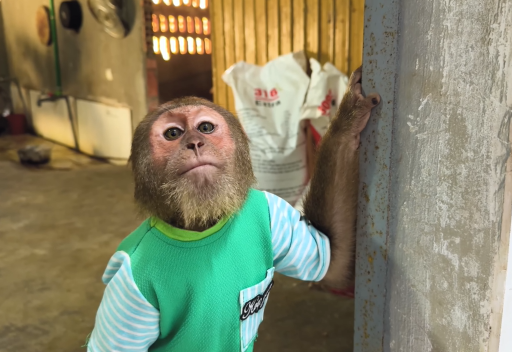 Before CUTIS could stop them, the twins raced inside, one jumping onto the sink and the other climbing the shower curtain like it was a jungle vine. The three baby monkeys followed, slipping on the smooth floor but laughing all the way. CUTIS sighed—he was the “smart” one, but sometimes even he couldn’t stop their wild energy.