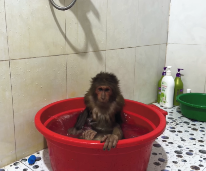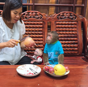 Mom brought them some fruit as a little reward for their bravery and teamwork. The baby monkey munched happily, while CUTIS lay back, exhausted but smiling.