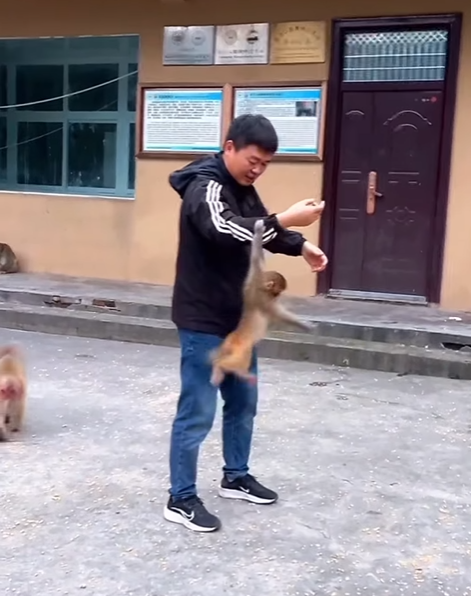 One viral clip shows a monkey stealing a tourist’s hat and running across a street. The tourist chased, tripped over a curb, and ended up falling — while the monkey paused on a railing, looking back proudly. The combination of human panic and monkey confidence amplifies the comedy.