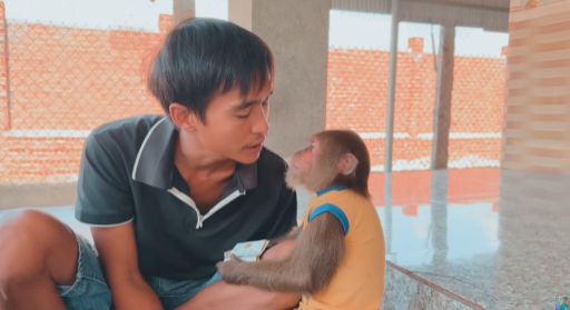 The humor of this moment goes beyond slapstick. It is rooted in the deep bonds between CUTIS, the baby monkey, and Dad. Their reactions reveal intelligence, awareness, and emotional connection. CUTIS’s cautious curiosity, the baby monkey’s playful boldness, and Dad’s oblivious but expressive signals combine to create comedy that is both natural and relatable.