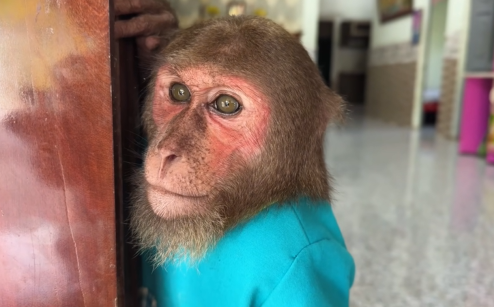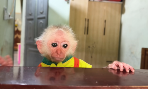 “Mom! CUTIS… he’s planning something!” the baby monkey seemed to say.