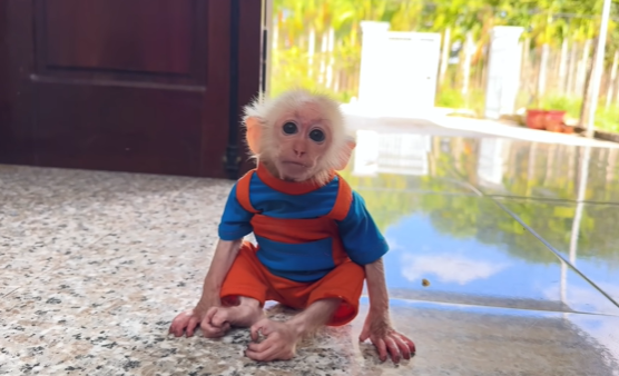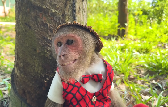 The baby monkey crept quietly through the leaves, hopping over roots and ducking under branches with the skill of a tiny ninja. Its target? CUTIS’s favorite resting spot, a sun-drenched branch near the edge of the forest where he often lounged and plotted his next funny escapade.