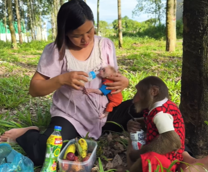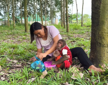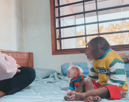 The baby monkey squeaked back, puffing out its tiny chest with pride. It had successfully pulled off a secret plan, made CUTIS happy, and created one of the funniest moments in the forest that day.