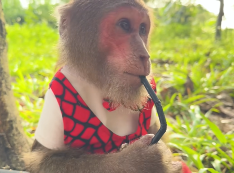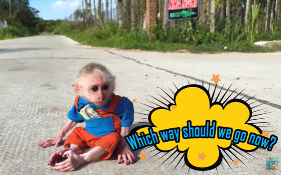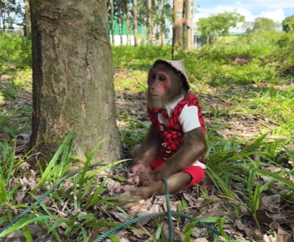 CUTIS was busy plotting his usual adventures. Perhaps it was a snack hunt, maybe a daring leap to the other side of the trees, or simply a game to annoy the humans nearby—whatever it was, it required focus and precision. The baby monkey, however, was busy in secret. While CUTIS was distracted, it had a mission that no one could know about.