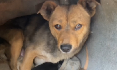 After about ten minutes of walking, she stopped near a large fallen log. Her ears perked up, and she whined softly again. Then I heard it — faint, weak whimpers coming from beneath the log. My heart skipped a beat.