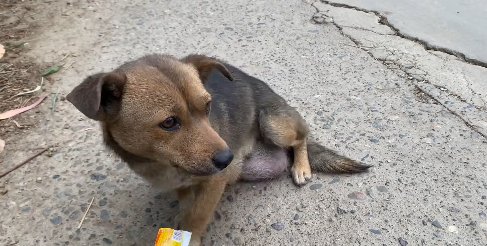 She stood still, watching me cautiously from a few meters away. There was something about her that immediately drew my attention — not fear, but a desperate pleading in her eyes, as if she was asking for help but didn’t know how. Her tail wagged weakly, and she let out a soft whimper.