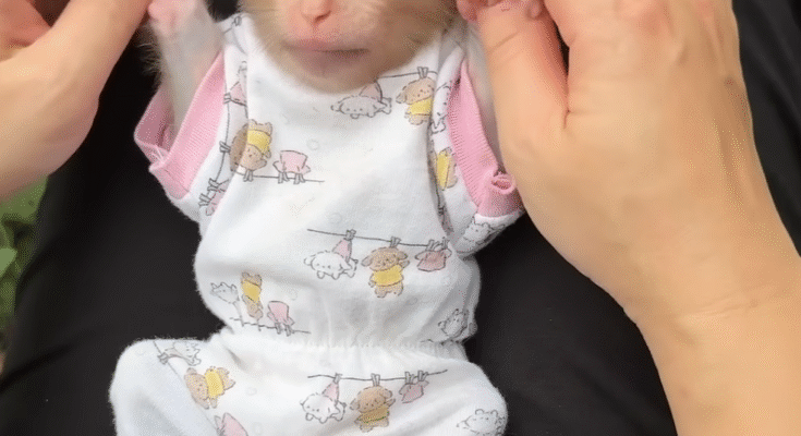 Her mother, Mima, adored her deeply. Every morning, Mima would gently groom Lala’s fur, removing tiny leaves or dust from her head. Lala loved the attention — she would close her eyes and hum happily, clinging to her mother’s chest while the sun warmed their bodies.