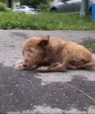 When I first saw her, I thought she was a shadow — a small, frail figure trembling in the corner of an abandoned street, covered in dust and fear. Her ribs showed through her thin skin, her fur matted and dull, her eyes wide with confusion and hunger. It was early morning, the kind of quiet hour when the world hasn’t fully woken up yet, and the light barely breaks through the clouds. That was when I noticed her — the starving dog who had been surviving on nothing but stones.
