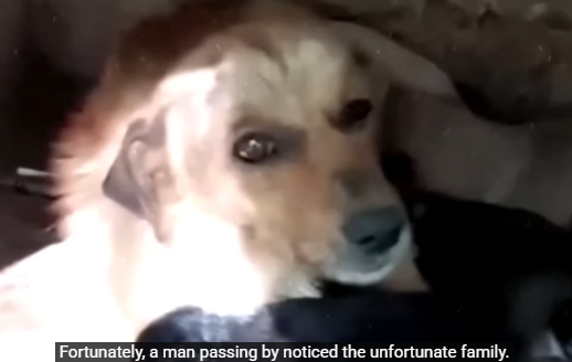 When the rescuer’s truck stopped nearby that morning, Luna lifted her head weakly. She couldn’t bark. All she could do was drag herself forward, leaving faint streaks of dirt behind. The rescuers saw her then — a mother’s body failing, but her spirit refusing to give up.