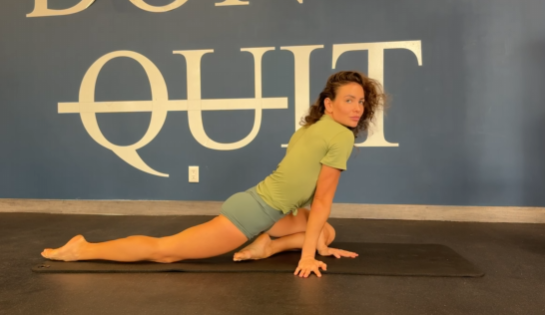 Now it’s time to get the body truly warm. I take long, slow steps into lunges, twisting my torso gently toward the front knee with each move. This dynamic stretch opens the hips, activates the glutes, and engages the core all at once.