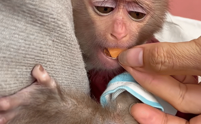 Her favorite snack, of course, is ripe bananas and sweet mangoes. Whenever she sees her mother with fruit, her tiny eyes light up, and she squeaks excitedly. “Eee-eee!” she cries, bouncing up and down. Lala always laughs and shares a piece with her. Watching Susu eat is a joy — she holds the banana with both hands, takes a big bite, and ends up with a messy face full of yellow mush. She looks at her mom proudly as if to say, “Look, I did it myself!” It’s moments like these that make everyone around her melt with affection.