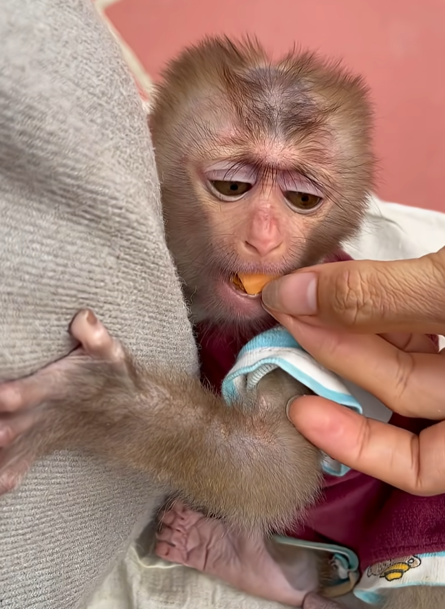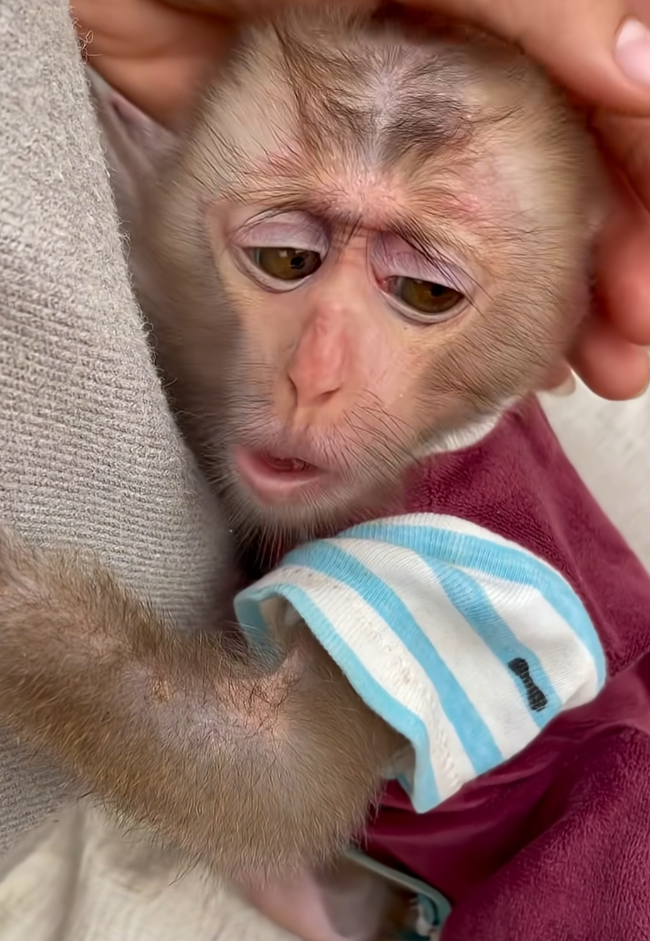 That day marked the beginning of a sweet friendship. Jolie often visited, bringing fruits and toys made of natural materials. She never forced Susu to come near; instead, she waited patiently each time until the little monkey felt comfortable. Over time, Susu began to trust her completely. She would jump onto Jolie’s shoulder, tug playfully at her hair, and sometimes fall asleep in her lap. It was a beautiful bond — proof that love and kindness could bridge the gap between humans and animals.