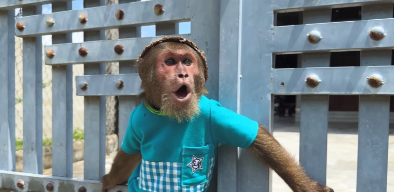 The stranger tried to play it cool. He crouched down and smiled. “Hey there, little monkey… come here. I won’t hurt you.”