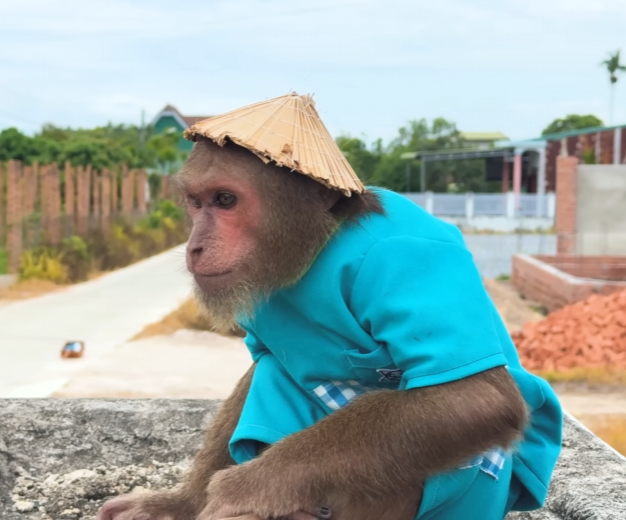 A stranger had been wandering through the village for days — a thin man in worn clothes, carrying a sack and a long bamboo stick. He claimed to collect fruits, but rumor had it he’d been trying to capture small animals to sell. When he passed Lina’s home, his eyes caught sight of Miko sitting on the fence, munching a banana like a little king.