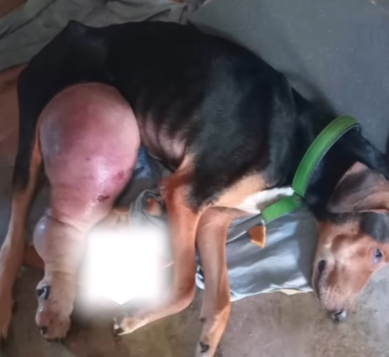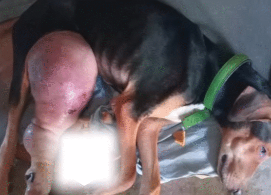 The sun had barely risen when I first saw him—lying in the dust near the old market road, half-hidden behind a pile of thrown-away baskets. His body was trembling, his fur dull and patchy, but what struck me most was his leg. It was grotesquely swollen, three times the size of the others, stretched tight and shiny like it was about to burst. He tried to lift it but couldn’t. The pain must have been unbearable.