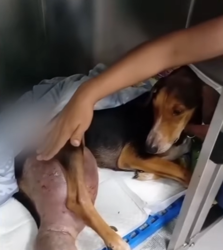 I went inside and saw him lying there, groggy but alive. The swollen leg was gone. For the first time since I’d met him, he looked peaceful—lighter, free. The prison that had held him for weeks had finally been removed.