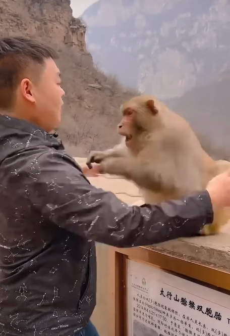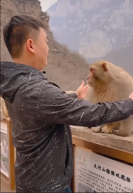 One time, Mr. Kuang was filming the monkeys eating. Cutis climbed behind him and gently tugged the back of his shirt. When Mr. Kuang turned, Cutis gave him the most exaggerated eye-roll a monkey could possibly give—and then ran off cackling!