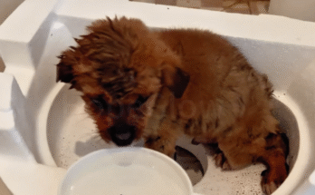She hadn’t eaten in days. Her legs were too weak to carry her anymore, and every breath came out as a shallow gasp. Still, when she saw a small bowl placed a few feet away — filled with rice and chicken scraps someone had left behind — a flicker of hope lit up in her fading eyes.
