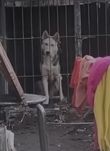 The metal door creaked each time the wind passed through the broken hinges. Inside the small, dimly lit shed sat a lonely dog — her once shiny coat now dull and matted, her eyes empty from years of waiting. Dust covered the corners, cobwebs clung to the walls, and silence wrapped the space like a shroud.