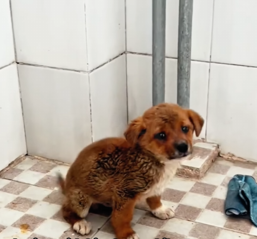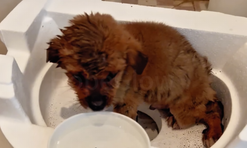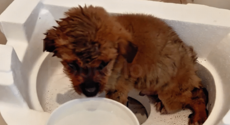 It wasn’t trash. It was a tiny puppy, barely alive. Its fur was matted with ice, paws stiff, body trembling weakly. The little creature tried to lift its head but collapsed into the snow again, letting out a faint whimper — so small it was almost swallowed by the storm.