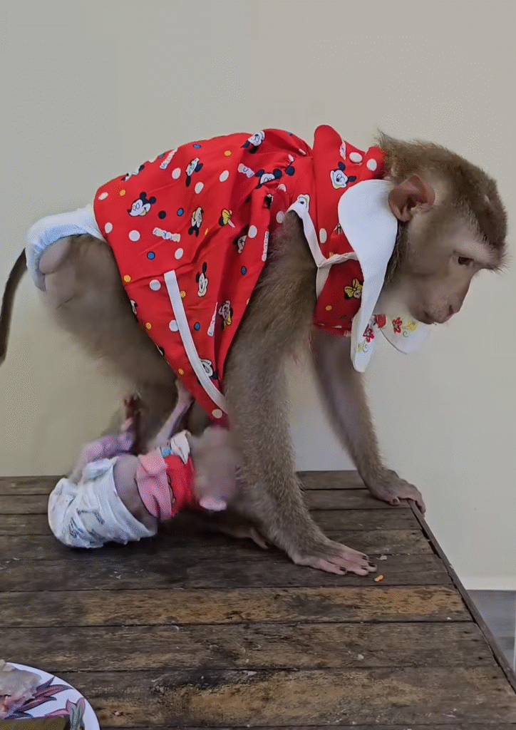 Adopted Sweet Liza had truly become the mothership of the sanctuary, her calmness healing Tiny Jack’s sadness, and her heart reminding everyone that love—when shared—is infinite. 💛🐒
