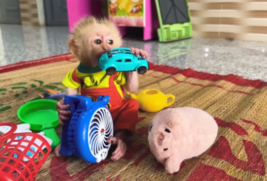 “Perfect!” CUTIS said proudly, testing the swing with a big smile. “Now baby monkey will love this!”