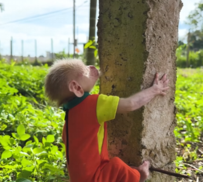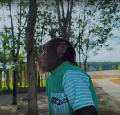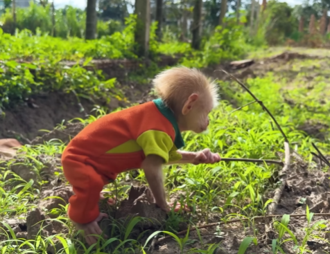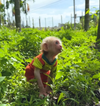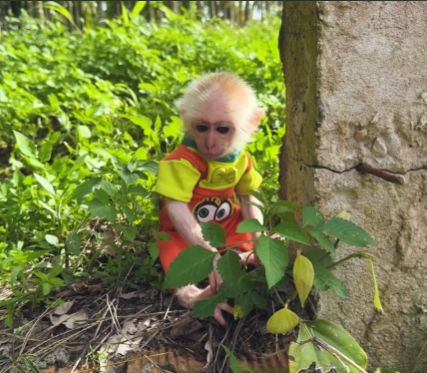 Baby monkey was hiding behind a bush, peeking out mischievously. “Hehe… CUTIS always plays tricks on me. Today’s my turn!”