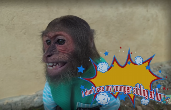 “Hey!” baby monkey shouted, laughing. “Now you’re doing it!”