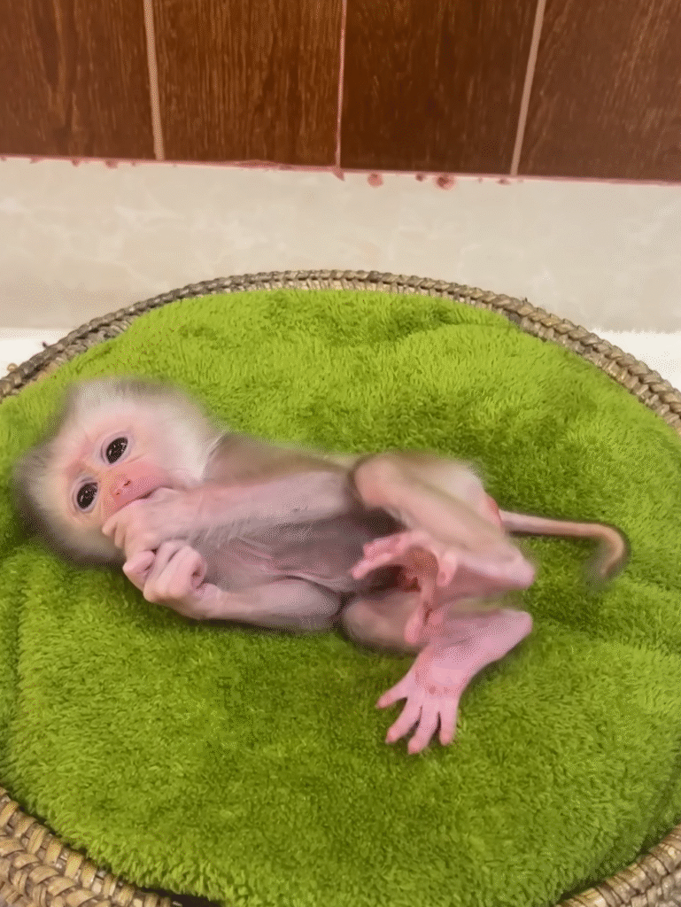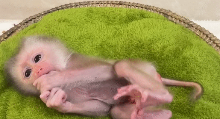 In a quiet village surrounded by bamboo forests and golden sunlight, a miracle happened one early morning. Lina, the gentle woman who cared for many rescued monkeys, discovered a tiny creature nestled inside a soft pile of leaves near an old tree. When she looked closer, her heart skipped a beat—it was a newborn baby monkey, so unbelievably small that she could fit in the palm of Lina’s hand.