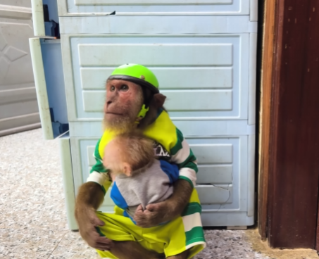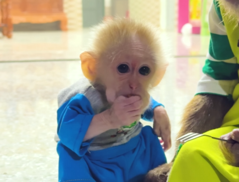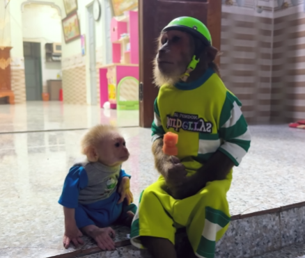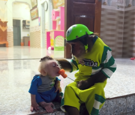 Baby monkey gulped it down… and his face twisted again. “CUTIS!!! That’s not helping!!”