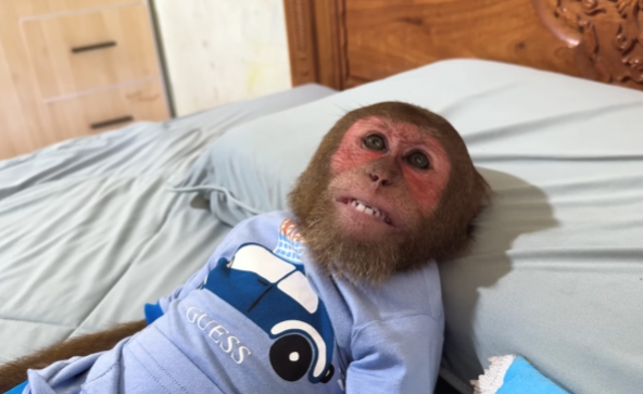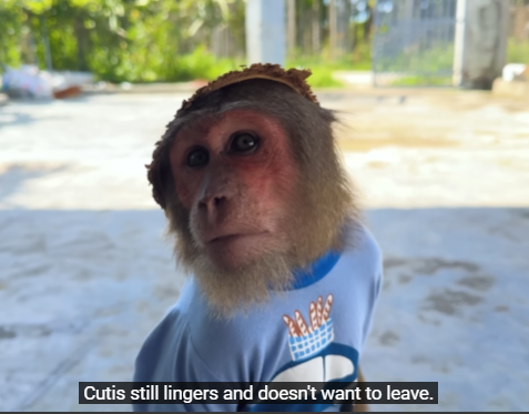 CUTIS danced wildly, shaking his tail and making funny faces. He mimicked his dad’s serious voice: “CUTIS! Don’t do that!” Then he imitated baby monkey’s whining voice: “But Daddy, CUTIS did it again!”