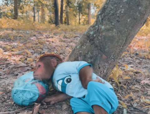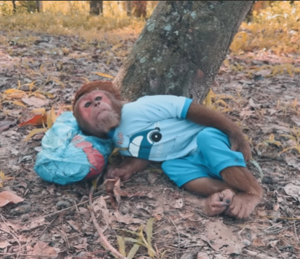 Baby monkey tried to stop laughing. “CUTIS! You can’t even survive a night without snacks!”