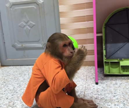 By midday, the adventure had turned into a small celebration. Other monkeys came to admire the bananas and to congratulate CUTIS on his daring harvest. They squeaked, chattered, and even attempted a few acrobatic flips themselves, inspired by his courage. CUTIS, however, remained modest, quietly happy to have made Mom smile and to have completed a mission that no one else dared.
