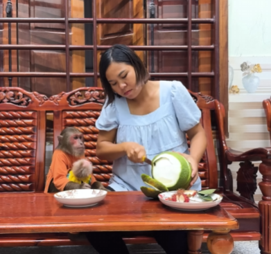 CUTIS didn’t stop with just harvesting the bananas. He even arranged them carefully, separating the ripest ones for Mom and leaving a few for Baby Monkey and other members of the troop. His thoughtfulness was evident in every small action, from the careful selection of bananas to the delicate way he placed them before Mom. It wasn’t just about daring to climb; it was about showing love, care, and devotion through action.