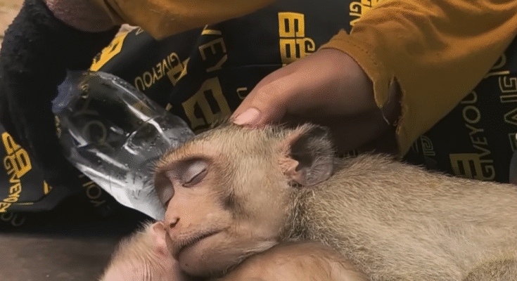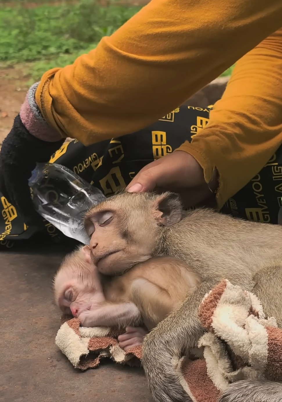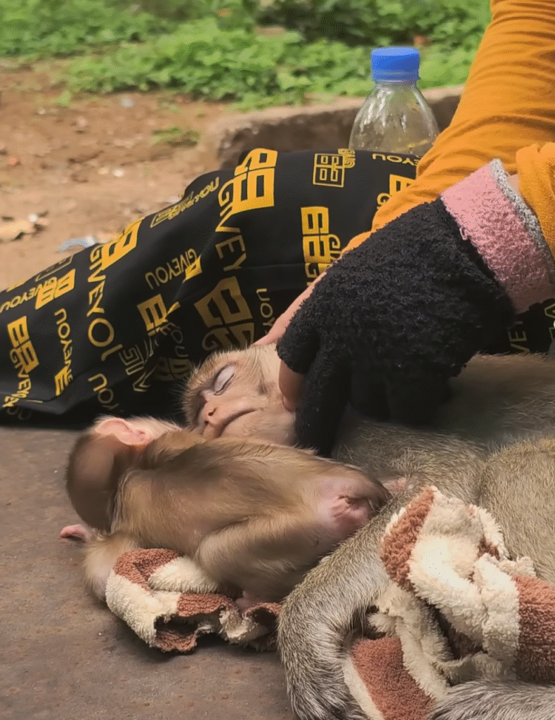 💞 A mother’s love knows no language, no boundary, no end. In her arms, even the smallest creature finds the greatest peace. 🐒💤