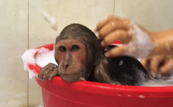 Nearby, Lulu, the youngest of the troop, was learning to peel a banana on her own for the first time. It looked simple when the older monkeys did it, but her small fingers struggled with the thick skin. She frowned and tugged with all her strength. Finally, with a determined grunt, the peel split open, and she squealed in delight. The other baby monkeys giggled and clapped for her. Lulu’s face glowed with pride as she took her first big bite. “Mmm! Sweet victory!” she said with a grin, and her mother hugged her tight.