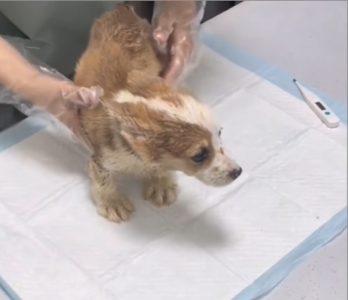 “We’ve warmed him up, placed him on fluids, started medication, and cleaned him up,” she continued. “He’s responding. Slowly, but he’s responding. He’s a little warrior.”