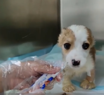 When they led me to the treatment room, I found the puppy lying on a soft blanket inside a warm incubator. His tiny body was connected to an IV line, and he was breathing with a bit more strength now.
