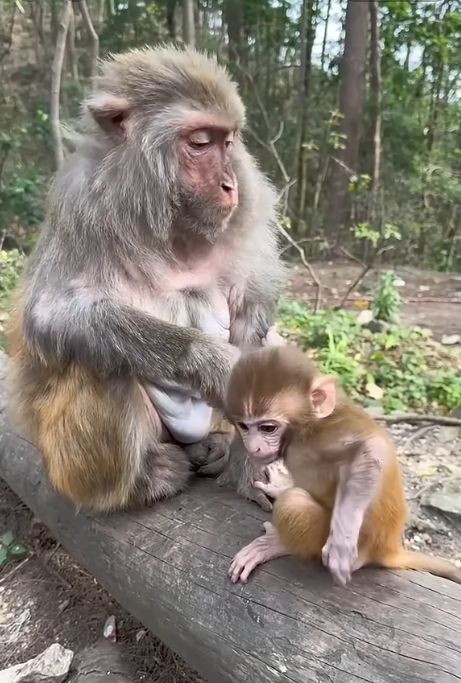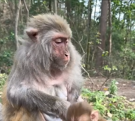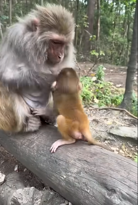 When Tiko finally fell asleep in Moku’s arms, tired from the day’s adventures, the old monkey sighed contentedly. His body ached, and his fur was a mess, but his heart was full in a way it hadn’t been for years. “This old monkey is miserable,” he whispered softly, stroking the baby’s fur, “but maybe… just maybe… this misery is worth it.”